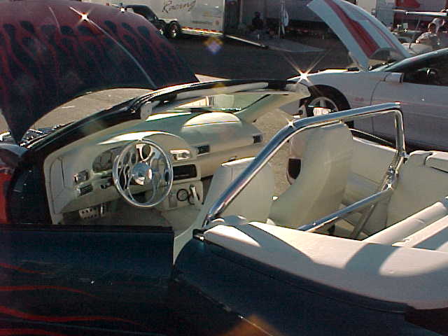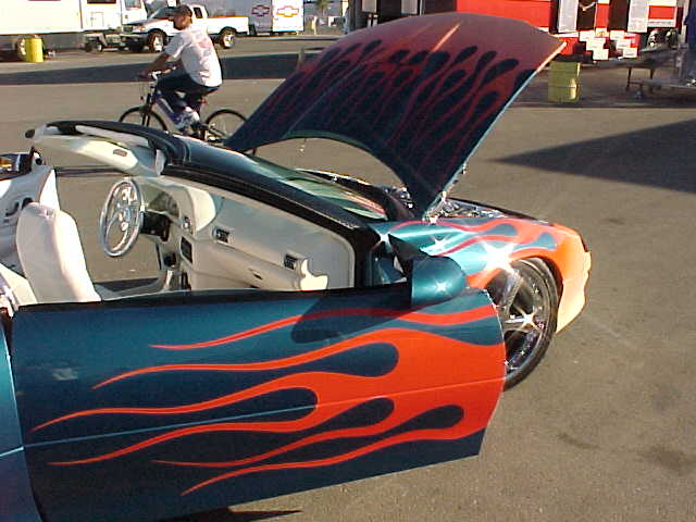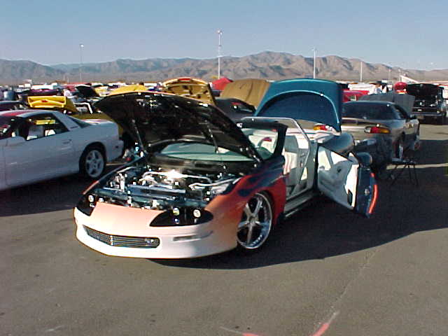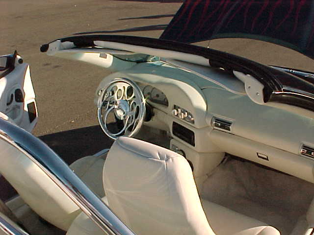 included a number of pictures below so be sure to check them out! Steve's mods include (6 years and $70,000 later!): Engine: Vortech S-trim Supercharger, Edelbrock headers, 52mm tb, MSD, No cats, tb bypass, full borla exhaust no plates, computer programming by Zimmer. Trans: Built 4l60E 2800 stall, aluminum driveshaft Rear: F*rd 9inch 3.89 gear 31 spline axle by Currie Suspension: Air bags all the way around, BMR torque arm, granatelli lca's, rksport adjustable panhard rod. Wheels: 20" Katana Balejo's with Nitto 245/30/20 Brakes: Power slot rotors soon Willwood or Baer Body modifications: Shaved gas door, antennae, emblems, trunk, key holes, suicide doors, SS hood, soon gfx and shaved bumper no lic. or side markers Stereo: DVD/CD in dash, with 3 Extant 10" woofers, Extant amps, separates. Interior is full white leather, white carpet with flames in the seats airbrushed, colorado custom steering wheel, all the accessories that mba makes. Chrome roll bar, shaved interior stuff like dash and console as well. |