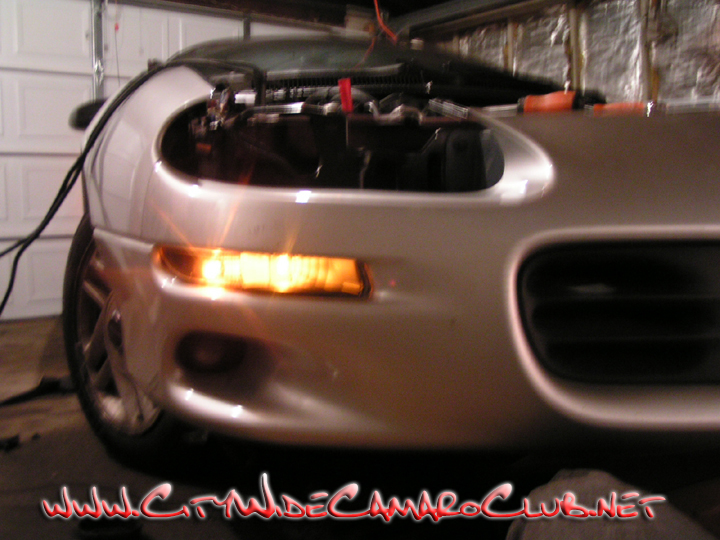 once installed they should look like this... at this time you should install the head light bracket. As seen below Once you do that install your fenders and front bumper cover (make sure you line them up properly) the same way you took off your old fenders and bumper cover. . Then plug up your fog lights and amber signal lights and test them. Then install head lights and hood... and your all done... |