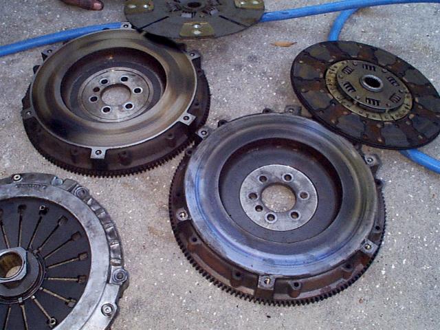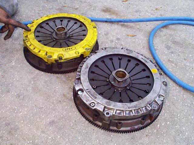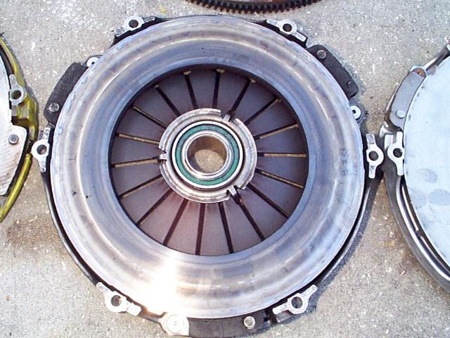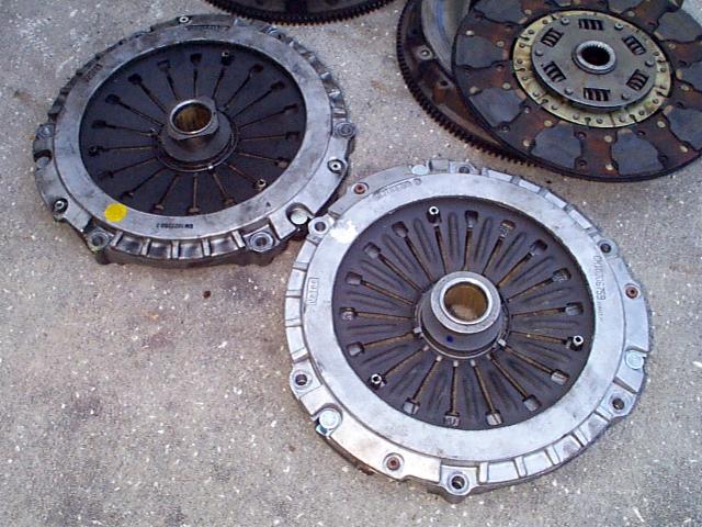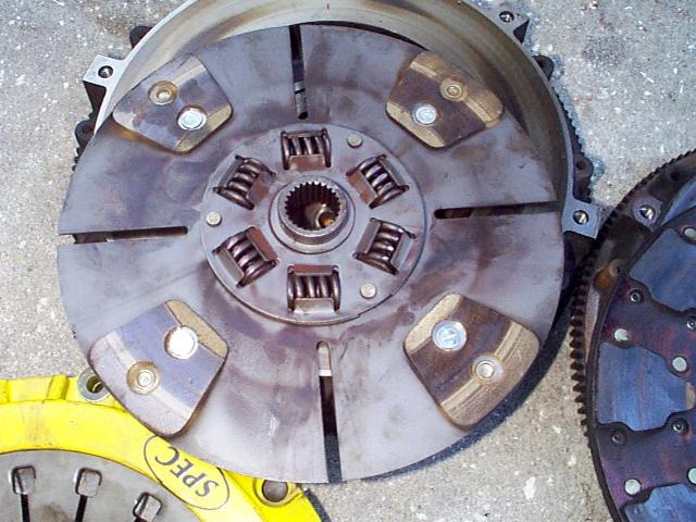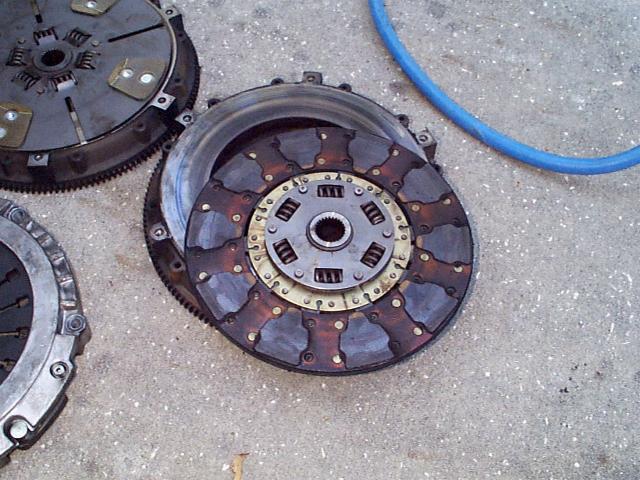 Pictures and Comparison I'm just throwing this page together rather quickly to get some pics up of the recent clutch problems I've been having. ARGGH!!! :-) These pictures came about due to my 2nd high performance clutch failing in well under a year with normal driving conditions. Sure, I get on it once in a while but only go to the track once or twice a year and then launch on street tires at under 1500 rpm. I'll show you pictures of a Star Stage III Kevlar setup, a LT4 pressure plate and clutchnet.com disk combo, and the stock pressure plate and disk that came out of the car. It's also important to note the stock clutch lasted in this car around 65k miles with 50k of those miles being with the car at around 450hp at the crank. I'm having trouble getting these high performance clutches to last more than 5,000 (sometimes less) before they completely go bad... doesn't seem to make a lot of sense? The stocker finally let go after doing a few additional mods to the old SS and me taking it to the track. It just couldn't take anymore but still ran a 12.8 at 110 mph slipping away (not bad though... didn't completely fail until the next run). I've been in contact with Star about the problems I'm having with their Stage III clutch. I must say their customer service is top notch and I would not hesitate to purchase another product from them. They have several LT1 Z28s out there with more horse power than myself and who are dumping the clutch at 5k rpm and don't have problems. Currently the clutch is in route to Star to be tested and have the Kevlar material replaced with Carbon. Star said the Kevlar seems to be a bit inconsistent... meaning, in some cases it works great but in others it doesn't seem to work at all? Not sure if it's the Kevlar material itself that is inconsist or if it is just very finicky in its application. Either way and even though Star knows this car is not stock and a modified SS, they are more than willing to fix this for me and get things running right for me. So far, a big thumbs up for Star in my book. |