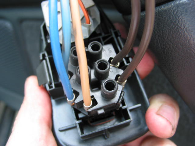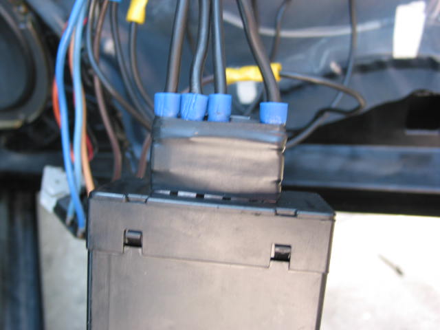 connections. This will also work from the passenger side switch :) Once you have verified it actually works, tape up the connectors as shown. This really won't do much because they won't be anywhere near metal but it made me feel better so I went ahead and taped them up :) |
