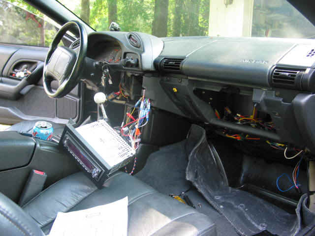 If you don't care to read the story, just skip to the next section! This all seemed VERY easy at first glance because I have a factory service manual and could easily see how to hook this up. However, when I actually dug to start on this, there was a glaring discrepancy between my factory service manual and the module I had in my had. The factory service manual showed 4 wires going into the module on the "Power Windows" schematic. However, the module I was holding in my hand had 5 prongs on it which would plug into the factory 5 cavity socket! DOH! I looked everywhere in that factory service manual for an explanation of what that "mystery" prong could be but found nothing. I also found a sketched picture of this module and it showed 5 wires going into it!?!? Based on this, I wanted to figure out what got connected to the unknown prong. I figured the easiest way to do this would be to just find it in the car, put a meter on it, and see what it's for. Well, as you can see by the picture, I tore apart my entire car looking for this damn module and COULD NOT FIND IT! I even broke my top dash piece BAD trying to pull it off and see if it was somehow mounted near the firewall. I was searching the area behind the radio and behind the passenger side glove compartment to no avail because that is where the factory service manual shows it being located. Well, after about 20 minutes of hunting for this darn module, I gave up and was just going to hook up the 4 terminals/prongs I knew and see what happened. Heck, it's protected by fuses so why not :) Much to my delight (and confusion!) when I got done the thing worked even though nothing was connected to this mystery terminal. I didn't care... it worked... but I still wanted/needed an explanation. So, I emailed another camaroz28.com member (shoebox) who I knew had a factory service manual and asked him if he had any clue about this module. It just so happens in his digging around in his own car he remembered seeing this module under the DRIVER SIDE dash area. HUH!?!? Well, sure enough, that's where it is at. ARRGGHH!! Not only did Rob (shoebox) find this sucker for me he also took it apart and determined my mystery terminal led to NOTHING inside the module! LOL! Must be a standard module box and this terminal just isn't used for the express down board. Anyway, I was happy to hear the reason I couldn't figure out what went here was because nothing was supposed to go there! Again, many thanks to shoebox for saving me the trouble of researching this further. Be sure to check out his great site here: Rob's Home Page He also has a great power window motor change out guide which goes well with this mod :) |