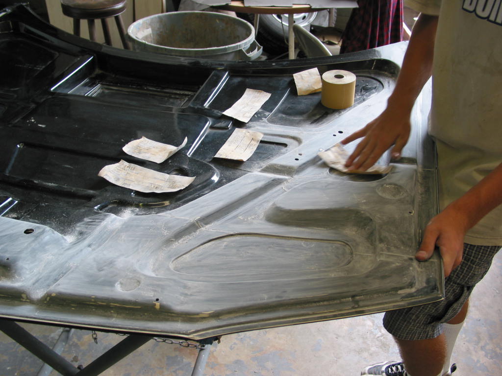 have been sanded down but are looking real good so far! Repair has begun on the hood