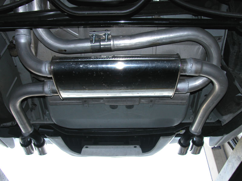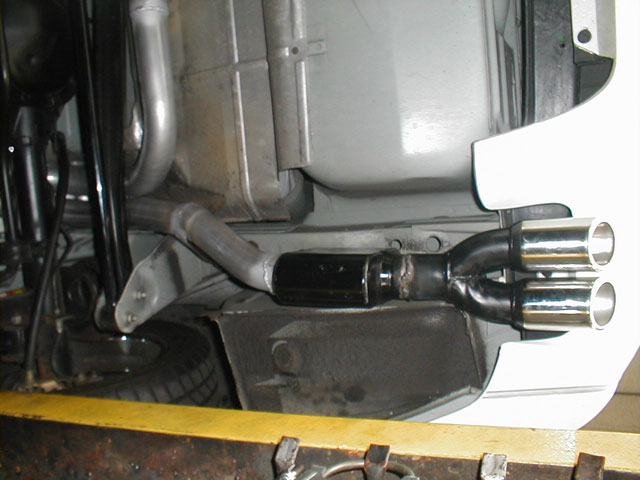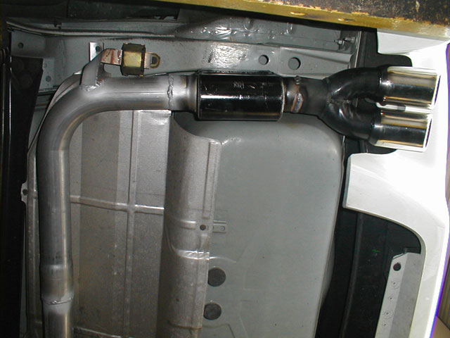 Pics below show my Flowmaster race mufflers. They have been replaced with the Ultraflow shown in the one picture above.